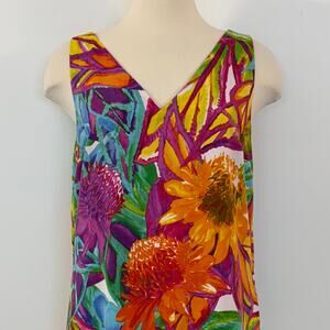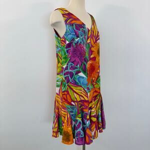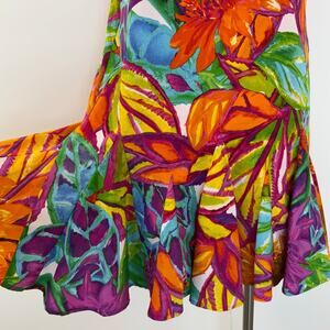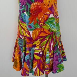 Ralph Lauren Sleeveless Flounce Hem Double V Neck Dress Orange Teal Floral 10