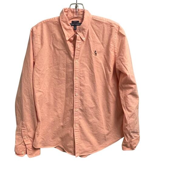 Ralph Lauren Slim Fit Boys Size 12 Peach Long Sleeve Button Down Colored Pony