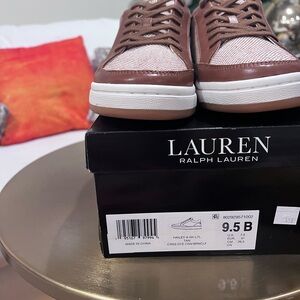 Ralph Lauren Sneakers Women's Size 9.5 - Hailey in Brown Textile/Leather Trim
