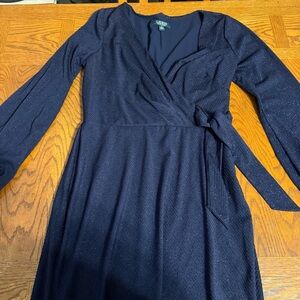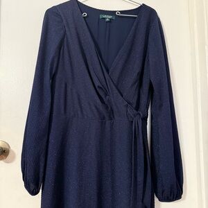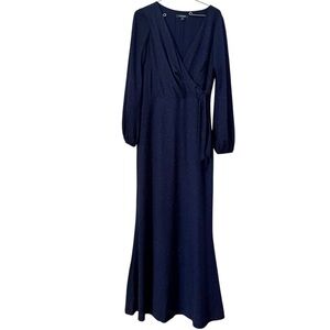 Ralph Lauren Sparkle Faux Wrap Maxi Dress in Navy Sz 6 Long Sleeve Formal Wear