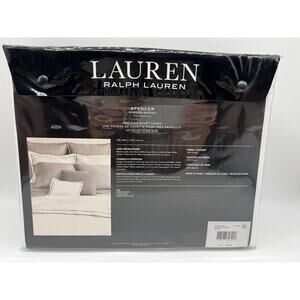 Ralph Lauren Spencer Border Satin Duvet Cover White/Sage 108 X 96 $420 NWT
