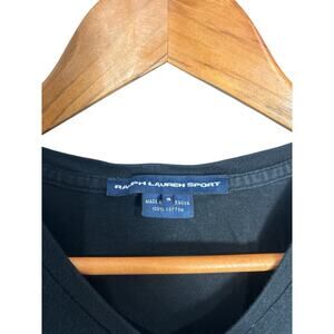 Ralph Lauren Sport Black Cotton V-Neck Tee Aqua Pony Logo S