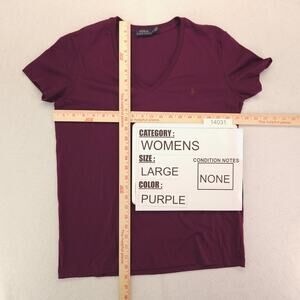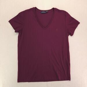 Ralph Lauren Sport Casual Short Sleeve V Neck T Shirt Womens Size L Purple