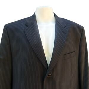 Ralph Lauren Sport Coat Jacket Chest 48” Black Wool Pinstripe Single Breasted