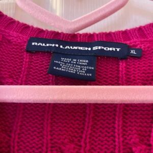 Vibrant fuchsia cable-knit sweater by Ralph Lauren Sport. Ideal for casual elegance. Like new.
