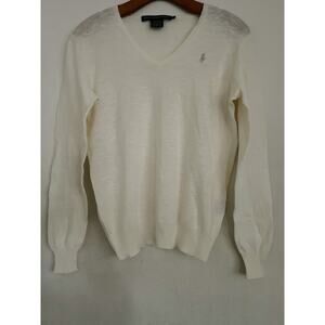 Ralph Lauren Sport Linen Blend Sweater S( No Sz Tag) Women White Preppy Pony