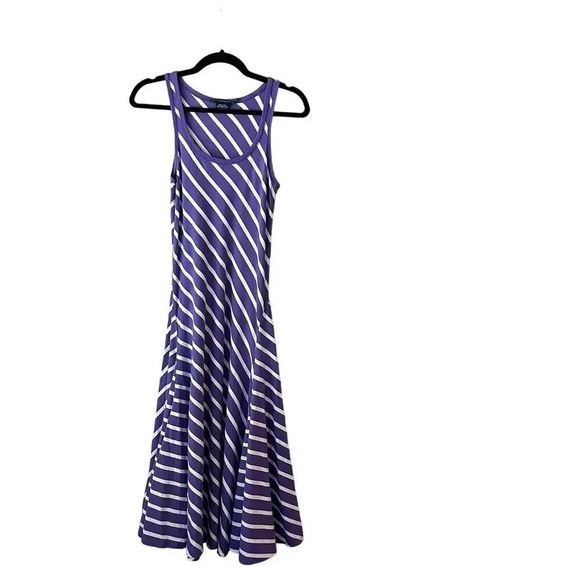 Ralph Lauren Sport Pima Cotton Midi Dress Striped Asymmetrical Stretch XS