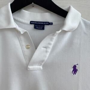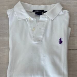 This Ralph Lauren Sport Polo is a classic. It is in amazing condition, and featured a purple logo.