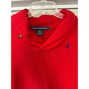Add a pop of color to your wardrobe with this beautiful Ralph Lauren Sport red shawl collar sweater. This women's size L pullover is perfect for a preppy, Y2K-inspired look. The classic design and comfortable fit make it a versatile addition to any closet.