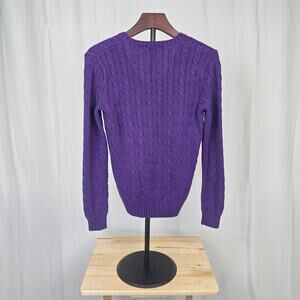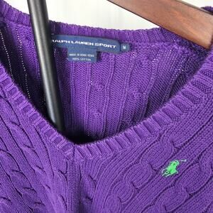 Ralph Lauren Sport Sweater Womens M Purple Cable Knit Cotton V Neck Vintage Hong Kong