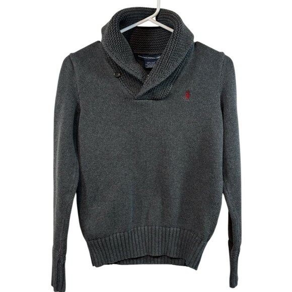Ralph Lauren Sport Sweater Womens M Shawl Collar Gray Pullover Cotton Academia