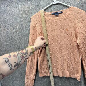 Ralph Lauren Sport Sweater Womens Medium Peach Cable Knit 100% Wool Pullover