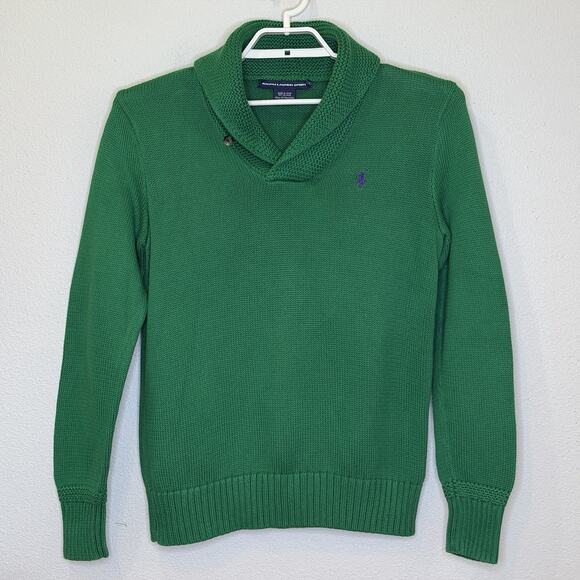 Ralph Lauren Sport Sweater Women's Size XL Kelly Green w/ Purple Pony Logo Shawl Collar Long Sleeve 100% Cotton