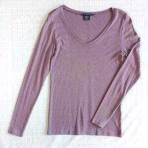 Ralph Lauren Sport V-Neck Long Sleeve Dusty Plum Top Lightweight Size XL