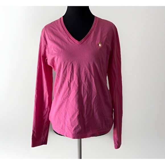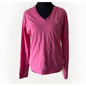 Ralph Lauren Sport Womens Babydoll Long Sleeve Top Size Medium Pink Preppy Y2K