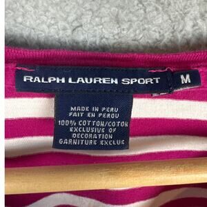 Ralph Lauren Sport Women's Striped V-Neck Top Pink White 3/4 Sleeve M Preppy
