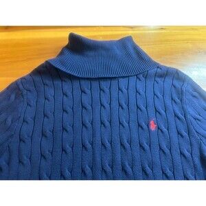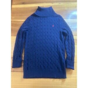 Ralph Lauren Sport womens sweater dress. XL. Cable knit. Navy. Turtleneck. Rolled cuffs. Embroidered logo