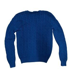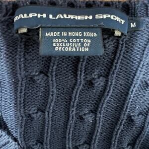 You'll love this vintage Ralph Lauren Sport sweater! This navy blue cable knit sweater is a size medium and in excellent used condition. It has no stains or holes and comes from a smoke-free home.