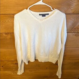 Polo Ralph Lauren Sport Women's White Sweater Vintage 25PTP V-Neck Cottagecore Knit