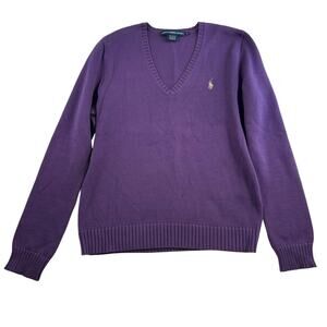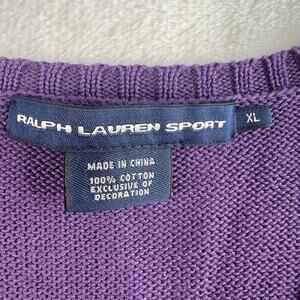Ralph Lauren Sport XL Sweater Purple V-Neck Multi Color Pony Vtg Y2K Academia