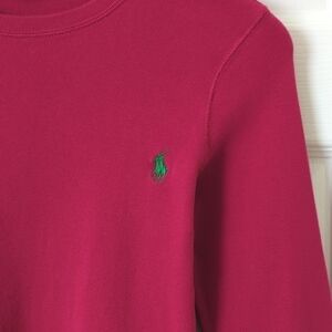 VTG and straight out of the early 00's - This classic top features a crewneck and long sleeves. It is hot pink in color with the polo logo embroidered in green on the upper left chest! It is lightweight and comfortable. The perfect piece to layer with jackets and pair with jeans for a complete retro look, great addition to any wardrobe! Super cute, timeless, and classic! Easy to style! High quality!
