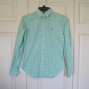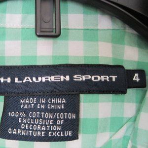 Ralph Lauren Sport green/white button up /down size 4. Material: 100% cotton.