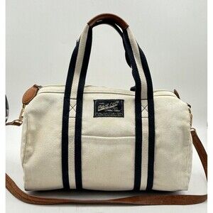 -RARE Polo R.L.& Co. limited edition Ralph Lauren sportsman goods cotton canvas beige and navy blue satchel bag with