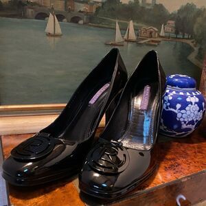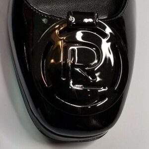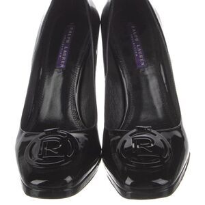 Timeless and classic RL Medallion Black Patent Leather Platform Pump.