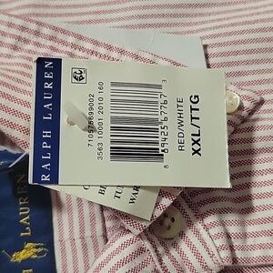 New with tags 100% cotton striped red and white shirt from Ralph Lauren.