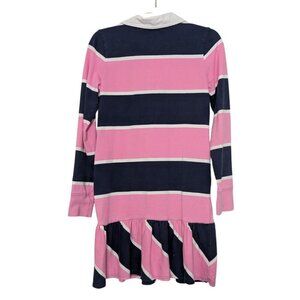 Ralph Lauren Girls 100% Cotton Pink and Navy Blue Stripe Rugby Polo Collared Preppy Dress Size Large