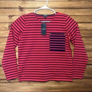 Ralph Lauren Striped Blouse Womens Small Red Navy Blue Contrast Pocket NEW $79