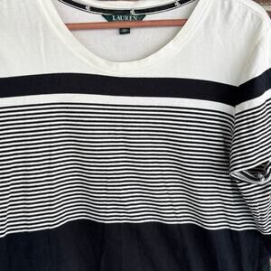 Lauren Ralph Lauren Striped Tee. Black and white stripes. Round neck. Excellent condition. Size XL.