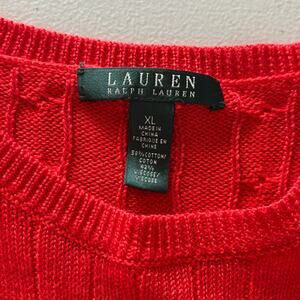 Lauren Ralph Lauren Women's Size XL Red Orange Cotton Blend Cable Knit Pullover Sweater