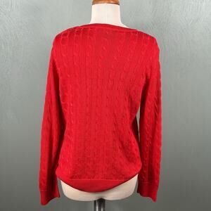 Ralph Lauren Sweater Black Label Women XL Red Cotton Blend Cable Knit Pullover