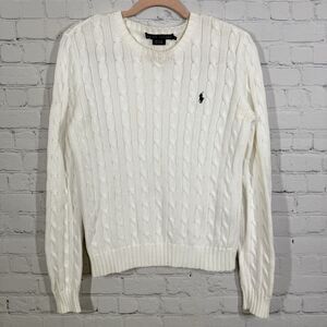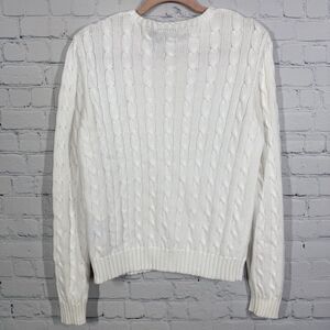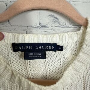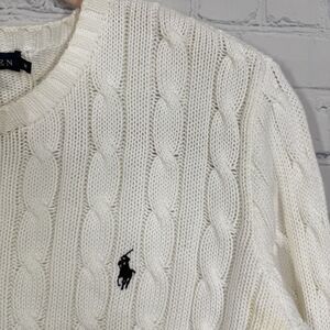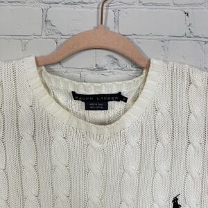Ralph Lauren Sweater Blouse Women Large Logo Cable Knit 100% Cotton Long Sleeve