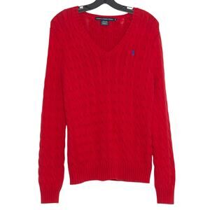 Ralph Lauren Sweater Cable Knit Preppy Holiday Fisherman Old Money Casual Red XL