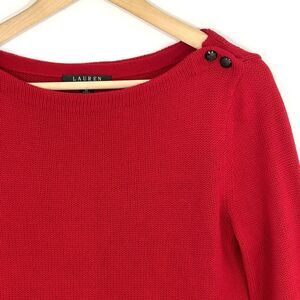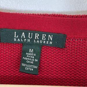 Ralph Lauren Sweater Size Medium Red Black Stripe Cotton Knit Preppy Nautical
