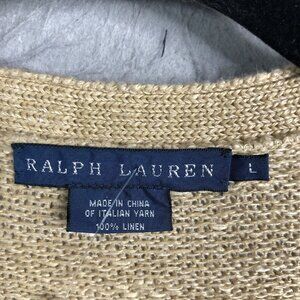 Ralph Lauren Sweater Vest L Tan Linen Longline Italian Yarn Academia Old Money