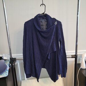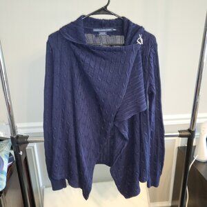 Ralph Lauren Sport Women's Sweater Chunky Shawl Horse Bit Clasp Navy Blue Label Size Medium