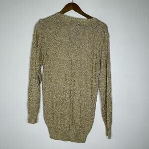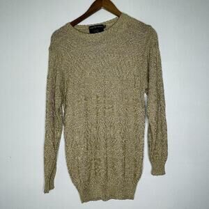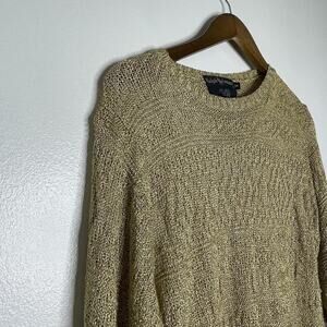 Ralph Lauren Sweater Womens Medium Gold Metallic Rayon Knit Pullover Crewneck