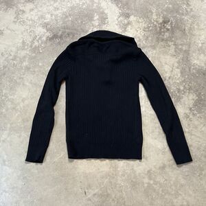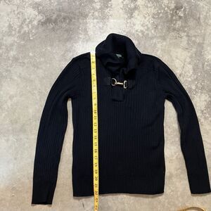 Ralph Lauren Sweater Womens Medium Ribbed Black Collared Basic Preppy