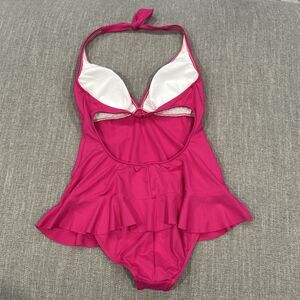 Ralph Lauren Swim Suit Womens Medium Hot Pink Skirted One Piece Halter Neck