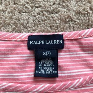 Ralph Lauren pink stripe short sleeve lettuce edge cotton short sleeve tee. Size girls Small/7.