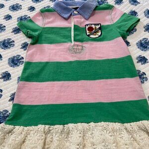 Ralph Lauren Toddler Girl Green and Pink Striped w/ Lace Bottom Dress Size 3/3T