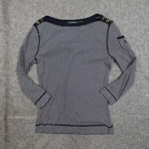 Ralph Lauren Top Womens Small Long Sleeve Boat Neck Striped Navy Blue Nautical
