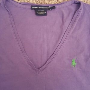 Purple Ralph Lauren Sport tee with green Polo logo. Although this item was worn once there is no visible signs or wearing.