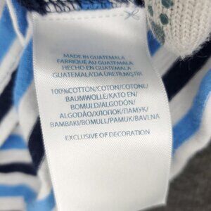 Condition: Used - Minor Stains (See pictures) Size: 9 Months Color(s): Blue White Details/Features: * Lightweight * Short Sleeve * Pattern: Striped * Material(s): 100% Cotton    * Accents: Embroidered, Logo Approx. Measurements while laying flat:  Chest (Pit-to-Pit): 10.5 in. (26.7 cm)  Length: 12 in. (30.5 cm)  Bundle and save on shipping.   2754