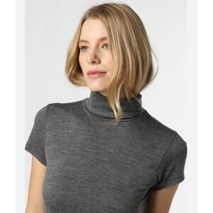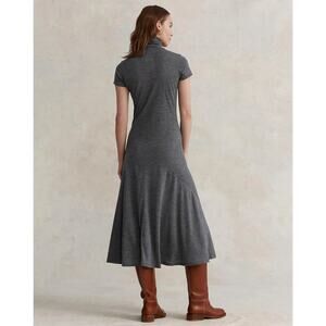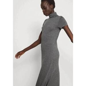 Ralph Lauren Turtleneck Midi Dress Wool Gray Jersey Short Sleeve Roll Neck XS