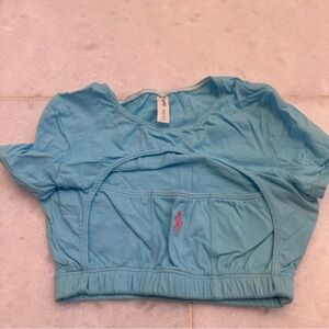 Frankie brand from urban outfitters reworked Ralph lauren light blue crop top with pink horse one of a kind