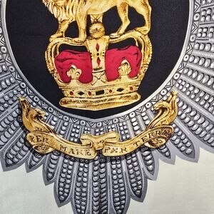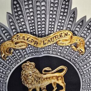 Ralph Lauren VTG Silk Scarf Regal Crown Lion Crest Black Gold Cream 34” Square